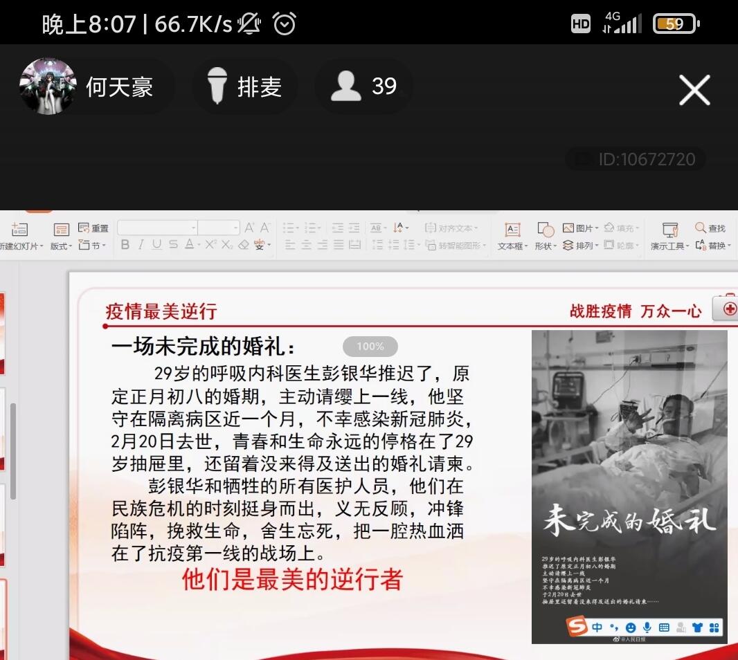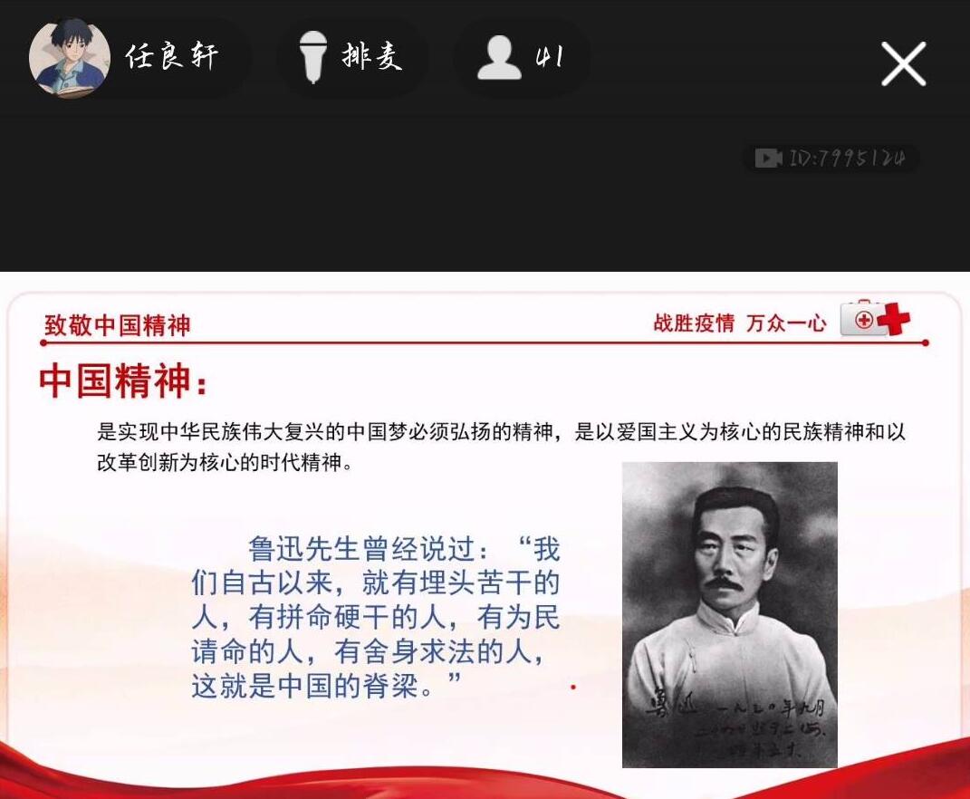 在活动中,大家一起观看了同心战疫情主题系列视频,各班团支书声情并茂为同学们讲述了抗疫中的最美逆行者以及在抗疫中无私奉献的英雄们,同学们也踊跃分享自己的感受和对英雄们的崇敬,抗疫精神扎根在每一个同学心中。