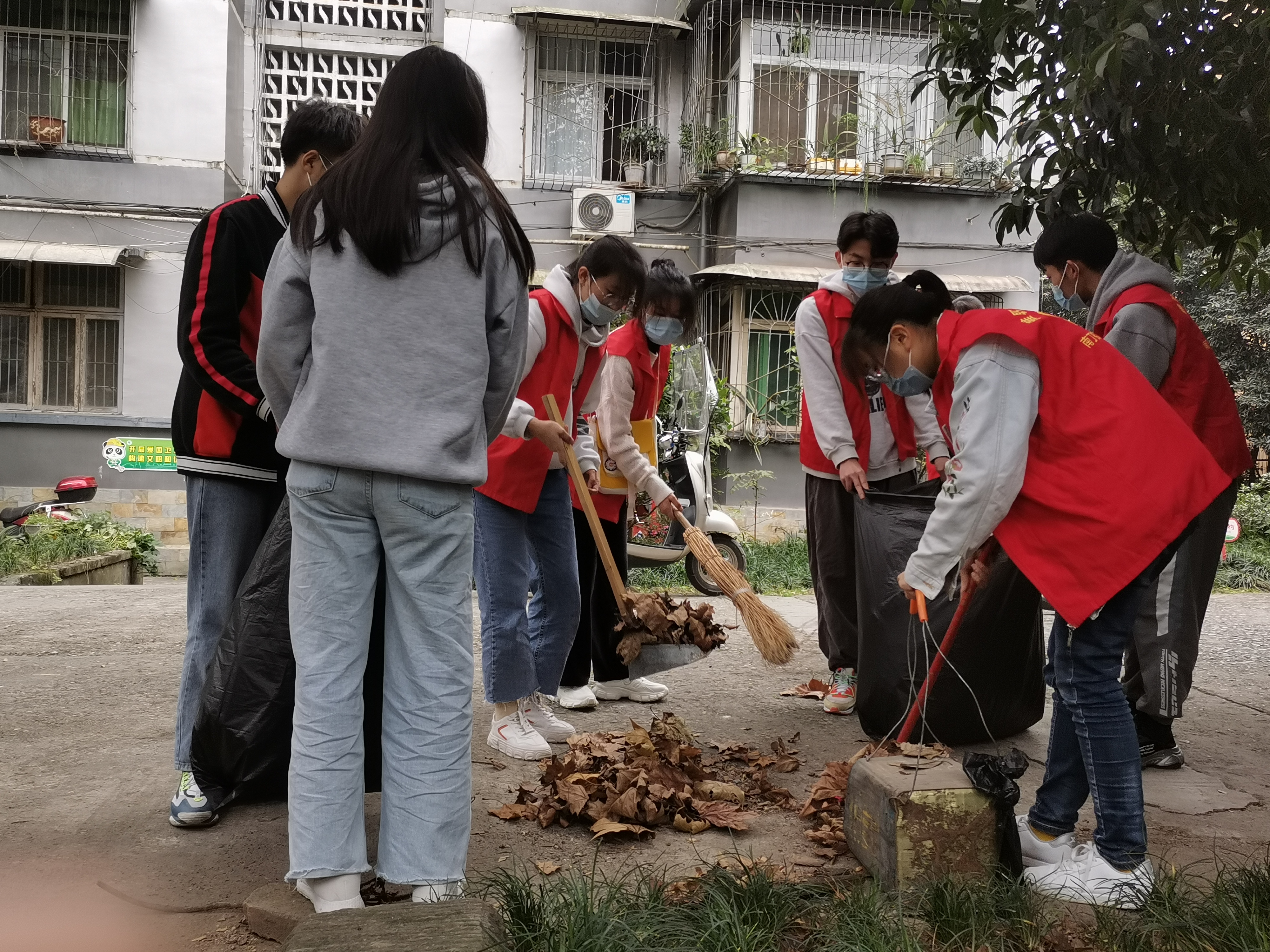 在与社区负责人对接具体工作后,志愿者在姚婕的带领下积极行动起来,对小区环境进行清扫,清理垃圾,铲除杂草,攻克卫生死角。经过2个小时的奋战,清扫后的小区环境焕然一新,受到了社区居民的一致好评。