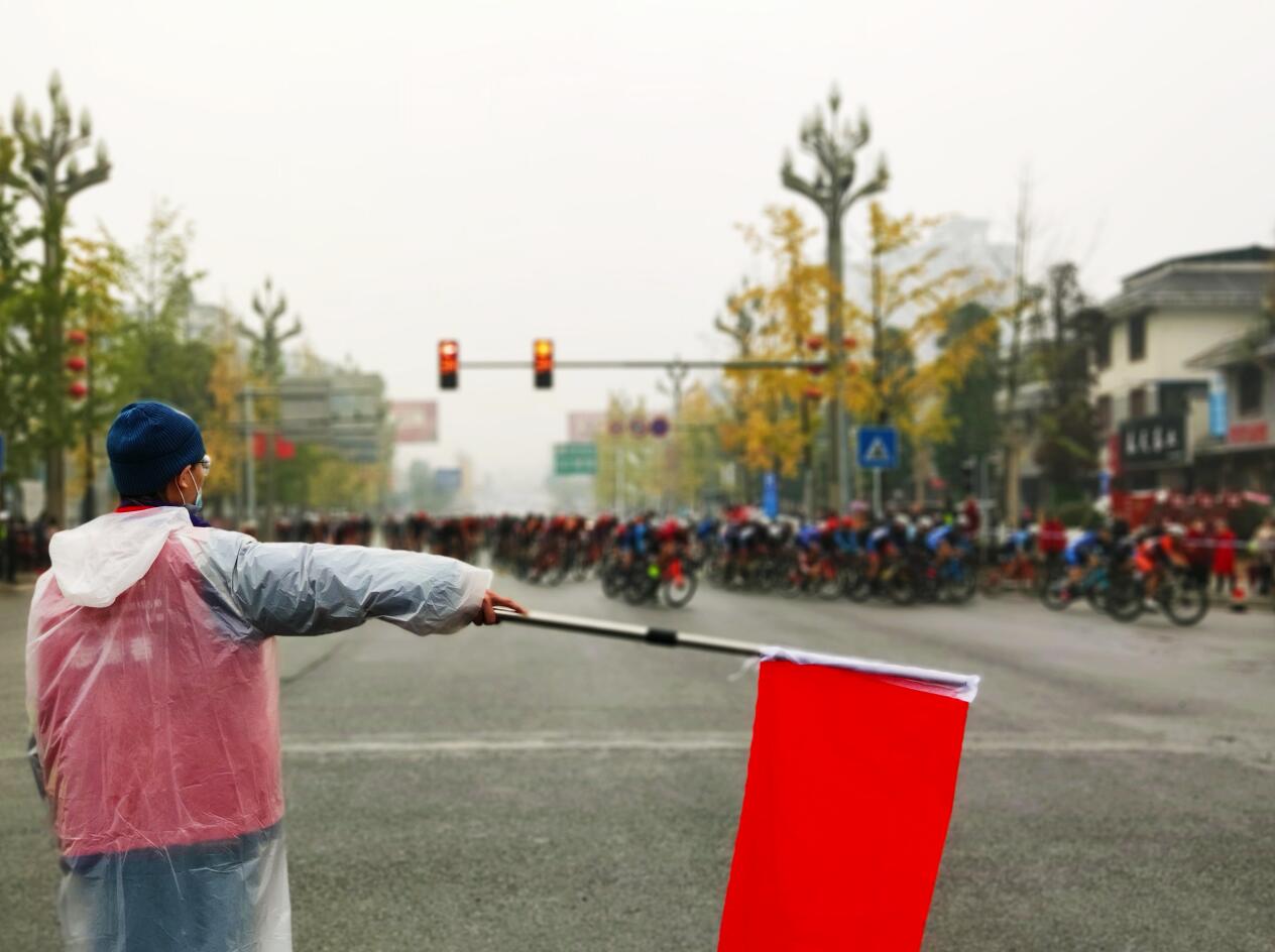 上午10:00伴随一声鸣响,比赛正式拉开帷幕。志愿者们在细雨下按照各自岗位分工,集中精力,积极工作。精彩的自行车比赛充分展现了参赛者们锐意进取的精神面貌,而志愿者们细心服务也为比赛增添了一份温暖的色彩,在社会中树立起中医与康复养生学院学生良好的公众形象。