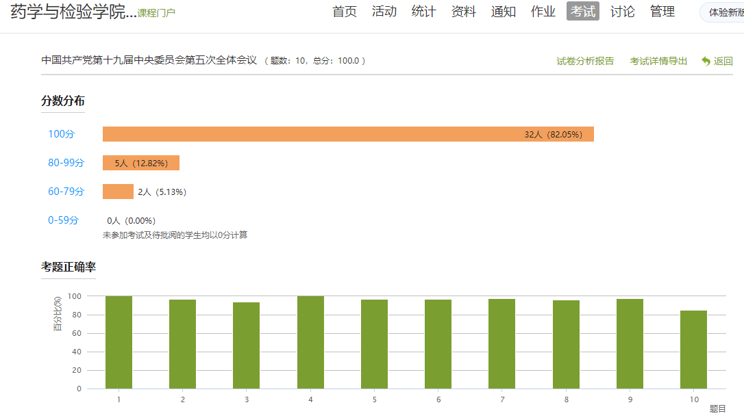 药检学院党总支创新政治学习形式,党总支书记杨泽刚在学习通平台上先建“药检学院学习培训班”,上传学习资料,老师们在规定时间内自主学习后进行测试与讨论。药检学院的39名党员教师按期完成答题,合格率达100%。