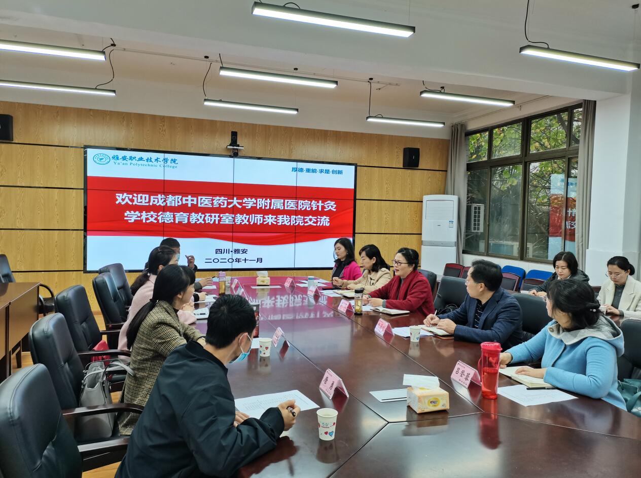 11月10日,成都中医药大学附属医院针灸学校德育教研室一行10人来院交流学习,学生处、院团委、药检学院、中医与康复养生学院、思政部等部门负责人和教师代表参加了交流。