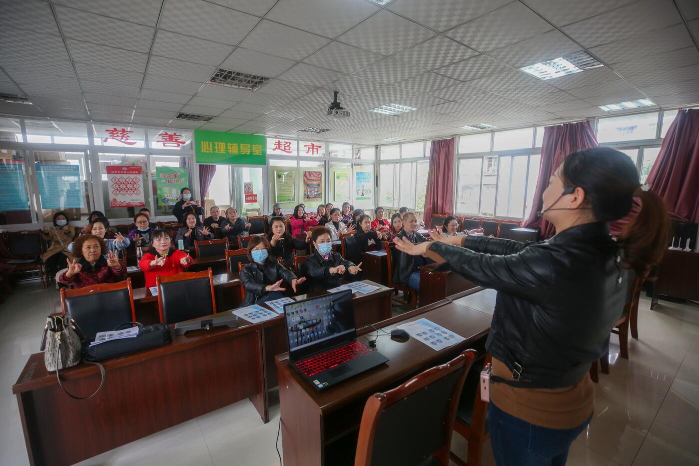 首先,由任冬梅同志作了预防老年痴呆手指操的讲座,她从手指操原理、预防作用,具体操作步骤等几个人方面进行了讲解,内容生动有趣,操作性强,受到大家一致好评。
