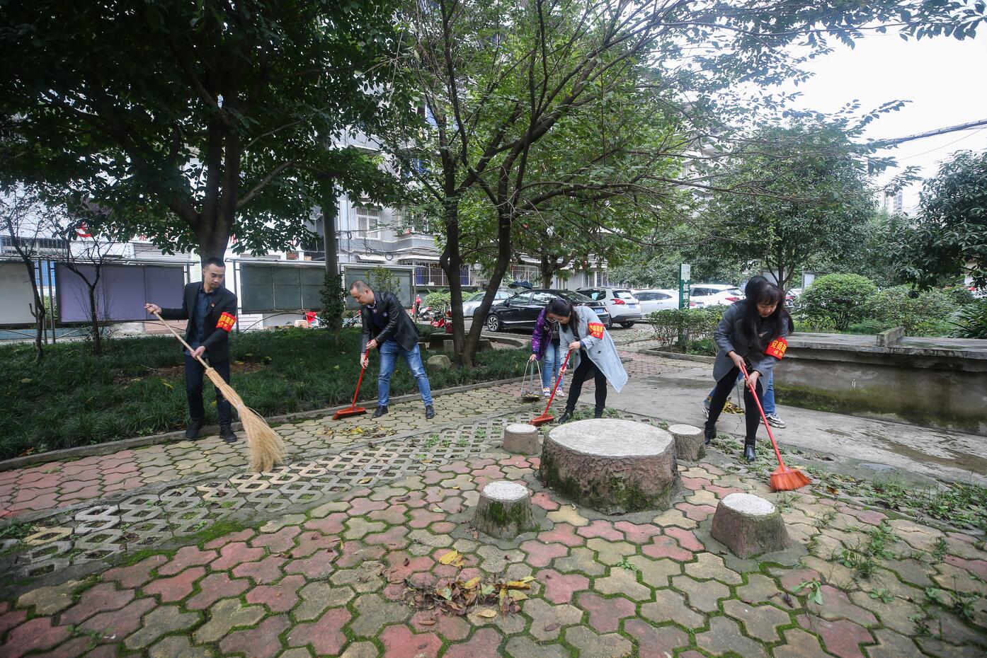 党员们还分组开展义诊和环境清扫等志愿服务。