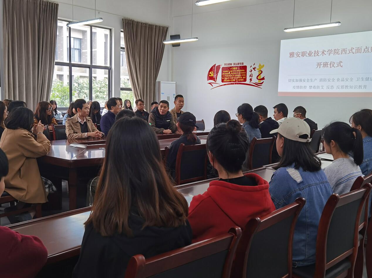 10月15日中午,“2020年首期西式面点师职业技能培训”开班仪式在药学与检验学院会议室举行。学院党总支书记杨泽刚、副院长罗小莉、李顺源、校企合作企业雅安尚德艺培训学校张刚校长,市人力资源和社会保障局领导和嘉宾出席了开班典礼。