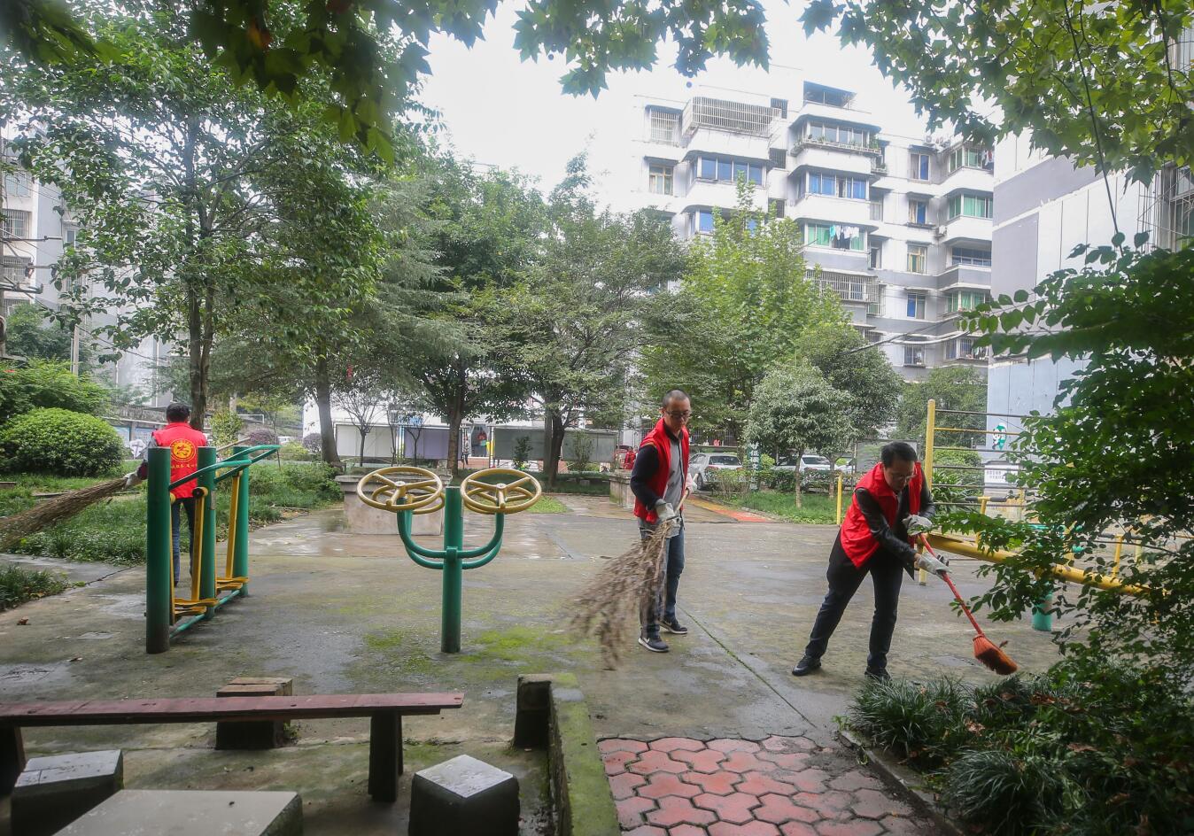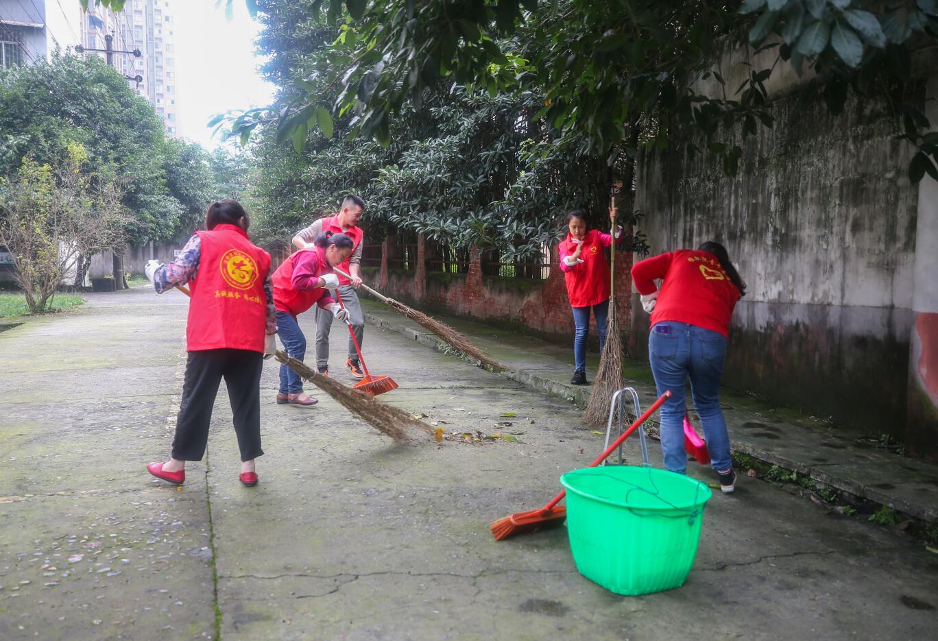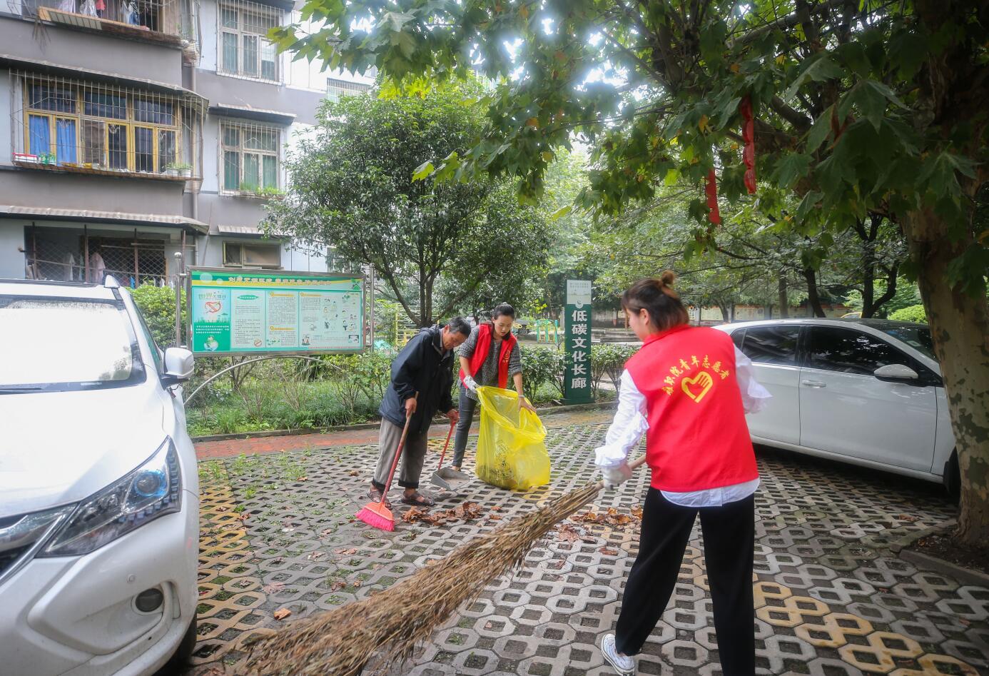 在与社区负责人对接“联包帮”具体工作后,志愿者们分为四组对小区公共区域、绿化带及卫生死角进行全面清扫,数十名小区居民自带清扫工具,主动加入志愿者队伍,共同对小区环境进行清扫。
