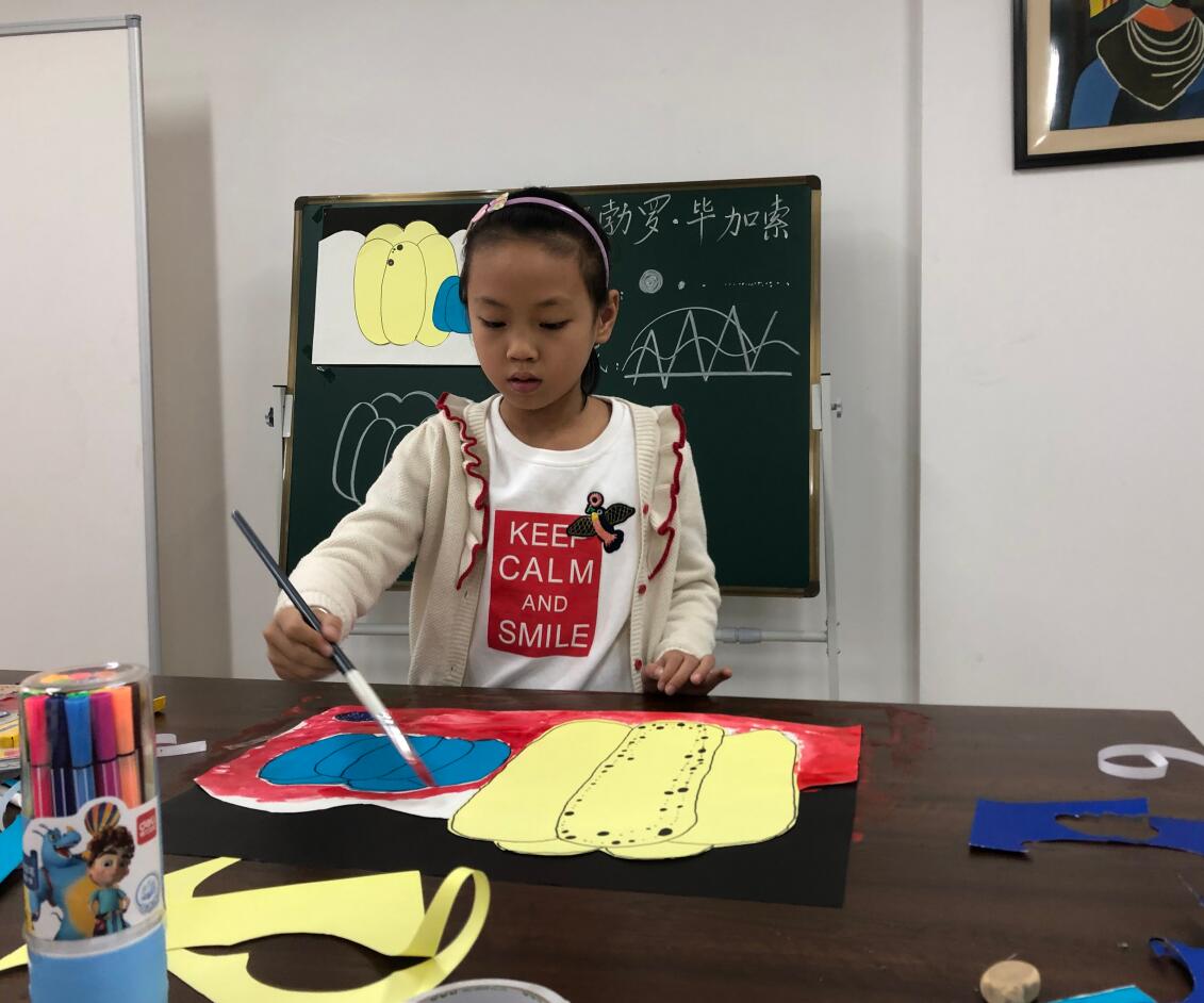 走进培训教室,浓郁的童趣扑面而来。18名6-9岁朝气蓬勃的小学员们早早来到培训课堂,个个兴奋地准备着上课使用的美术工具。美术培训活动一开始,公益培训少儿美术课程的陆小路老师首先带领小朋友们一起欣赏了西班牙画家:巴勃罗.毕加索的作品,并结合当前少年儿童的兴趣热点,通过生动形象的分步骤讲解与肢体语言配合表述,将本节课绘画的方法与技巧贯穿在课堂中,小朋友们们听得津津有味。在与小路老师的不断互动中和鼓励下,孩子们发挥着自己天马行空的想象,独立创作出了一幅幅的大作。