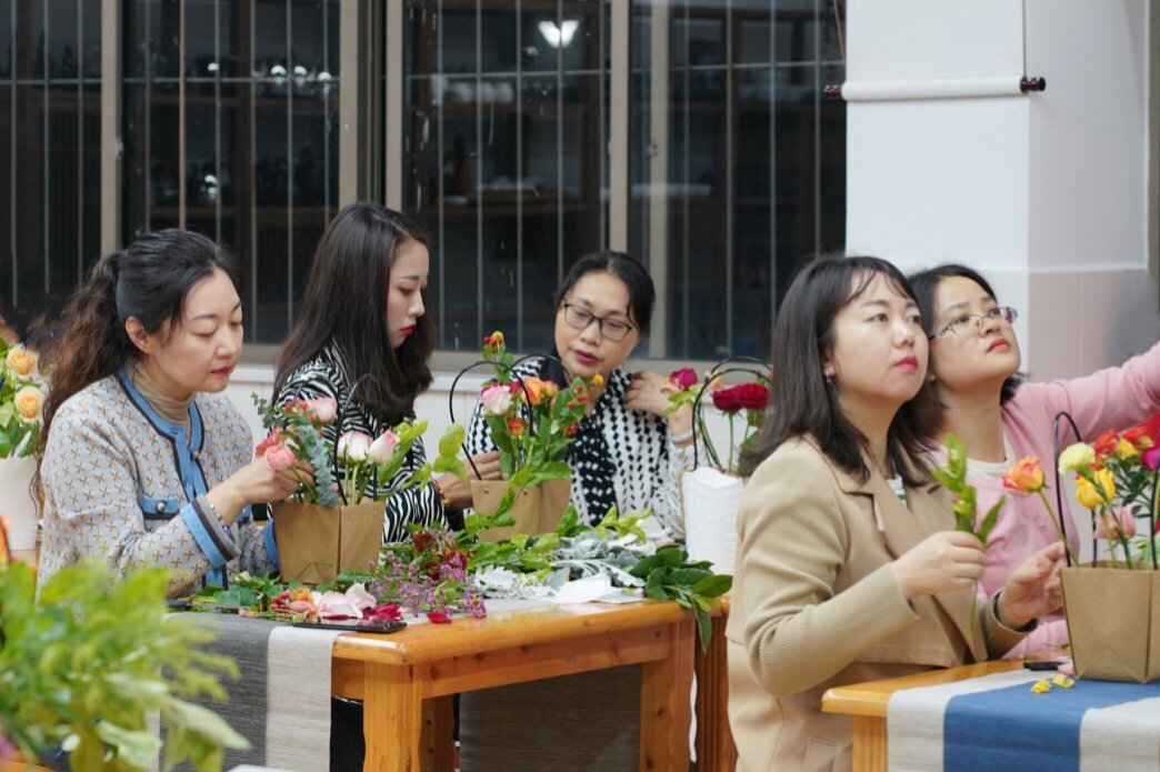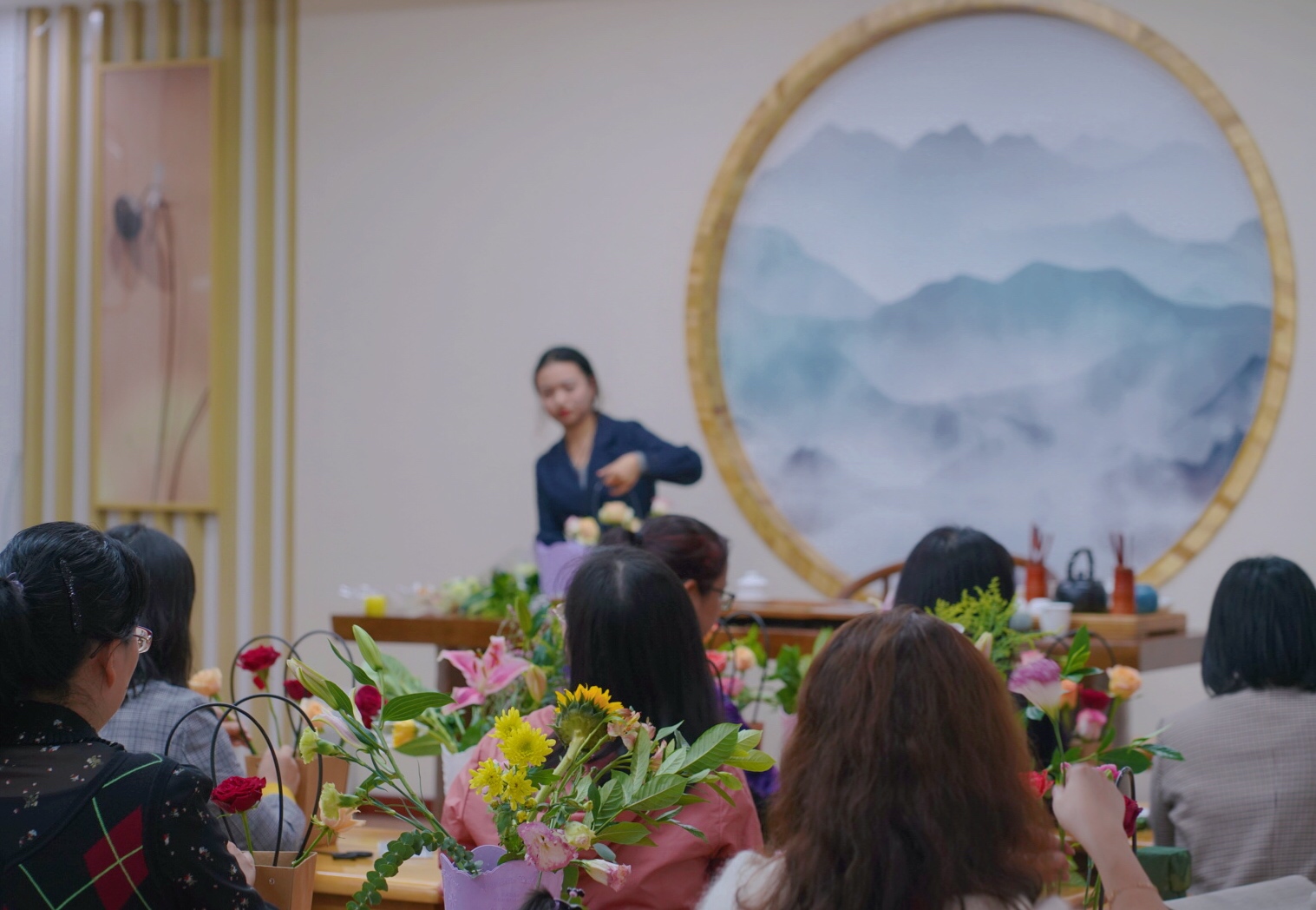 本次活动邀请了专业花艺师为大家讲授插花知识、演绎插花技巧,带领大家感受鲜花在自己手中绽放的浪漫。