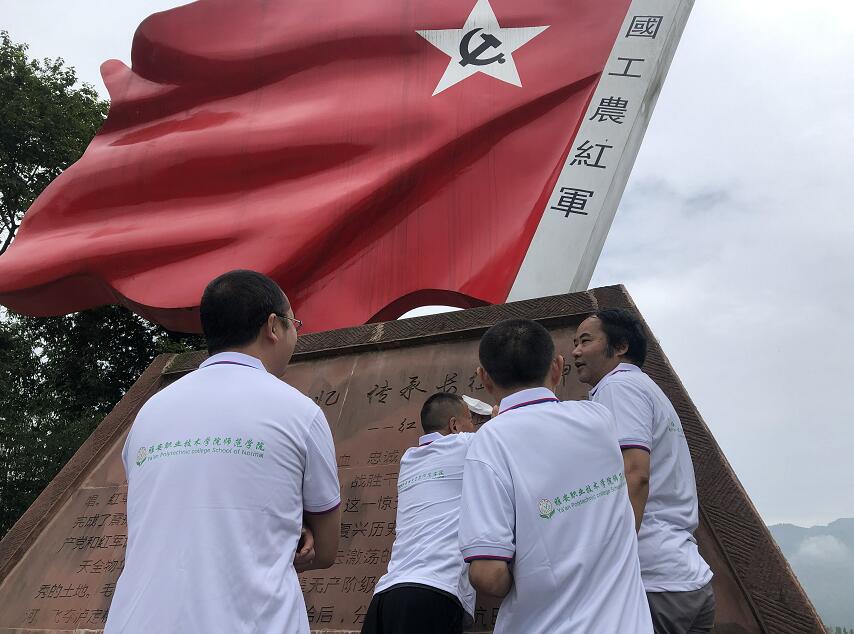 在红军村,王志勋带领党员教师参观了红军村二期建设,从共产党人的初心使命入题,讲述了当年红军在红军村的战斗、生活的历史故事,以及红军村近年来在打造红色旅游文化基地过程中,引领乡村振兴发展所取得的成绩。在瓜果产业园,党员教师们参观了极具特色的瓜果培育基地,了解产业园的种植和发展情况。最后,在老场村千亩种养示范基地,面对一片绿色荷塘,王志勋介绍了近年来仁义乡的乡村振兴养荷典型事例。