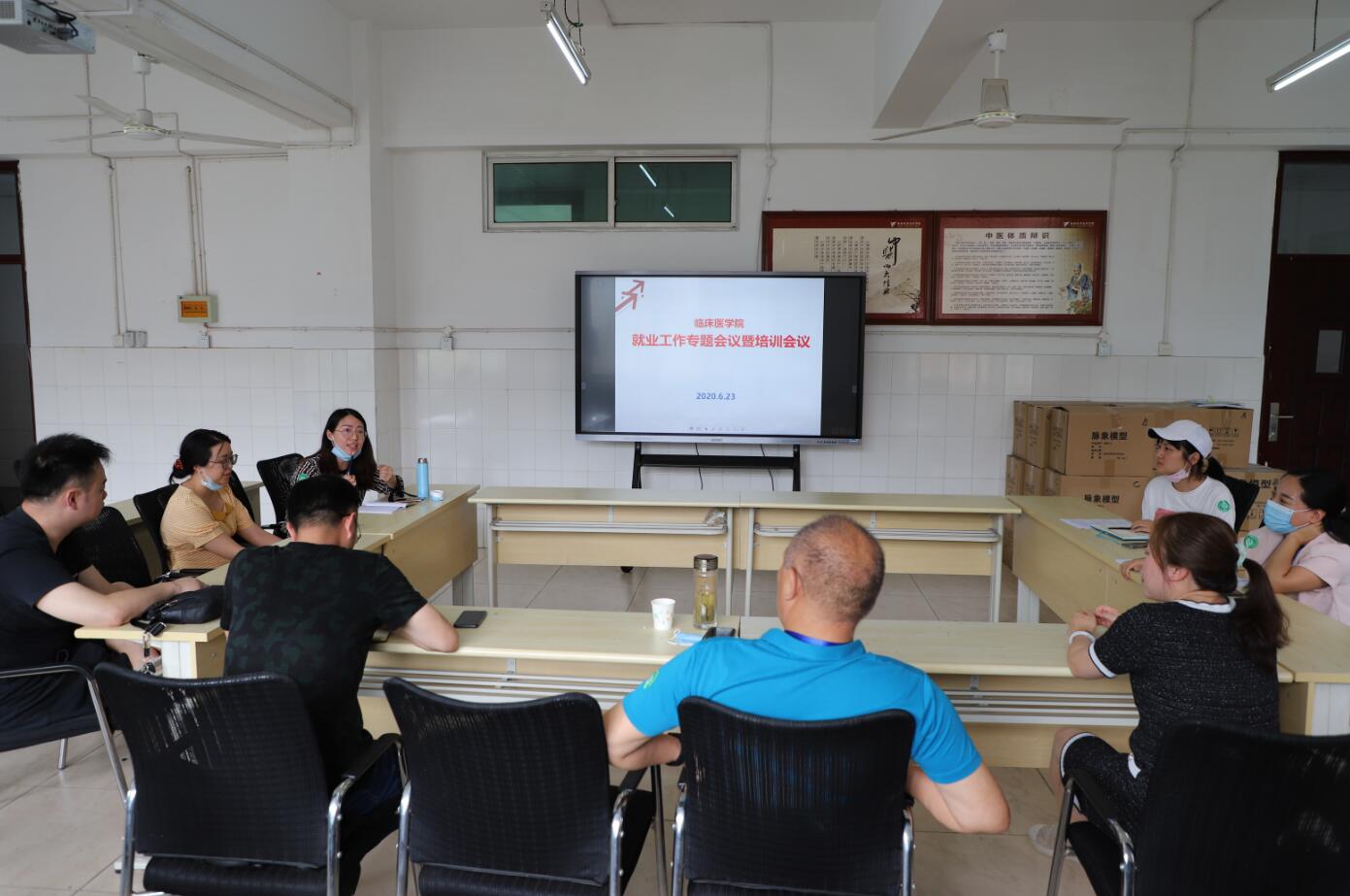 6月23日,临床医学院在育才路校区实408召开了2020届学生就业工作会议,学院副院长、临床医学院党总支书记樊正康,招就处副处长吴洁,临床医学院副院长庞嘉言,临床医学院2020届毕业班辅导员、班主任参加。