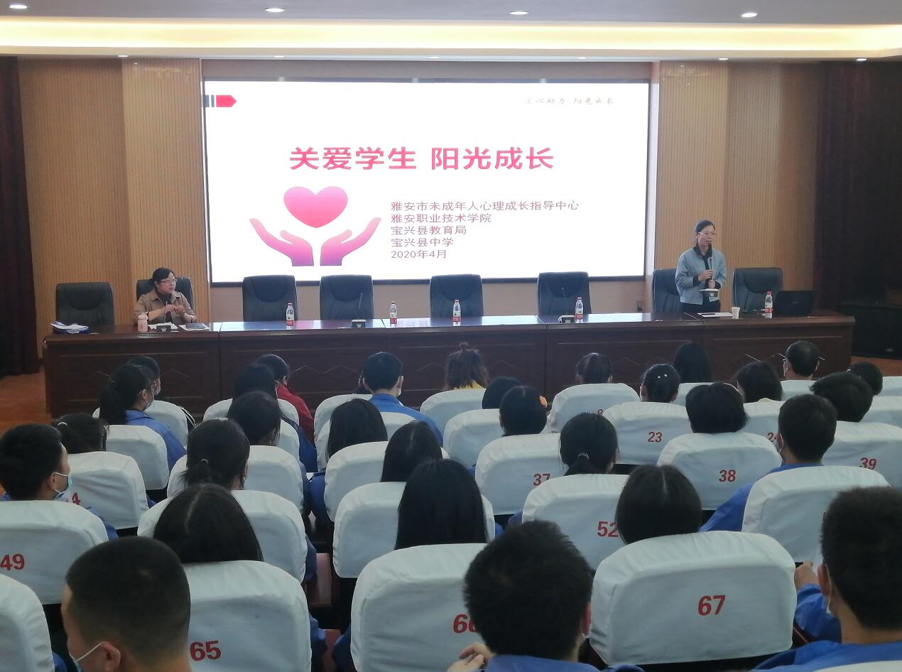 4月28日-30日,受宝兴教育局委托,雅安市未成年人心理成长指导中心、学院心理教师王丽、王可晖、侯述娟赴宝兴县开展主题为“关爱学生,阳光成长”心理健康教育活动。针对中小学生疫情防控期间和常见的心理问题进行了心理健康专题讲座,普及心理健康常识。