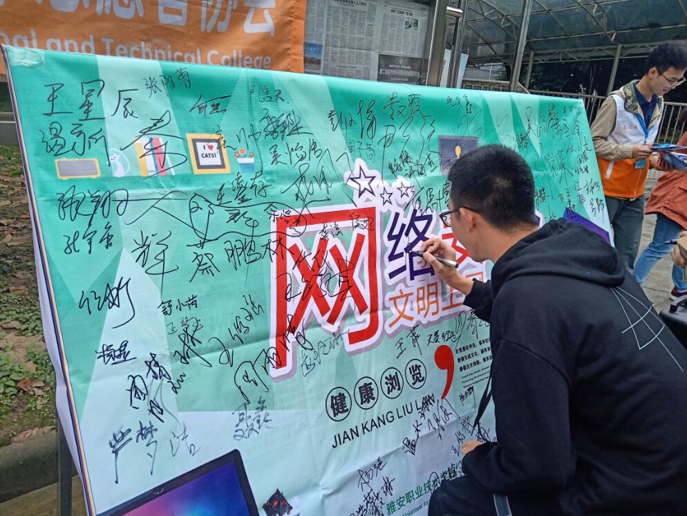 活动开始,同学们在志愿者的讲解与指引下,积极了解“网络安全知识”宣传单的内容,并在签名墙上留下自己的名字,表达自己争做绿色网民的意愿;气球的爆炸声,参赛人员的欢笑声不断从“消除病毒”小游戏的活动现场传来;“网络安全知识你比我猜”小游戏,既考验大家对网络安全知识的了解,又考验大家的默契程度,有配合默契的组合,也有“手舞足蹈”引得大家哄堂大笑的组合,整个场面其乐融融;参与活动了解网络安全知识的同时还有机会获得精美的小礼品。本次活动,共200余人参与,发放“网络安全知识”宣传单150余份。