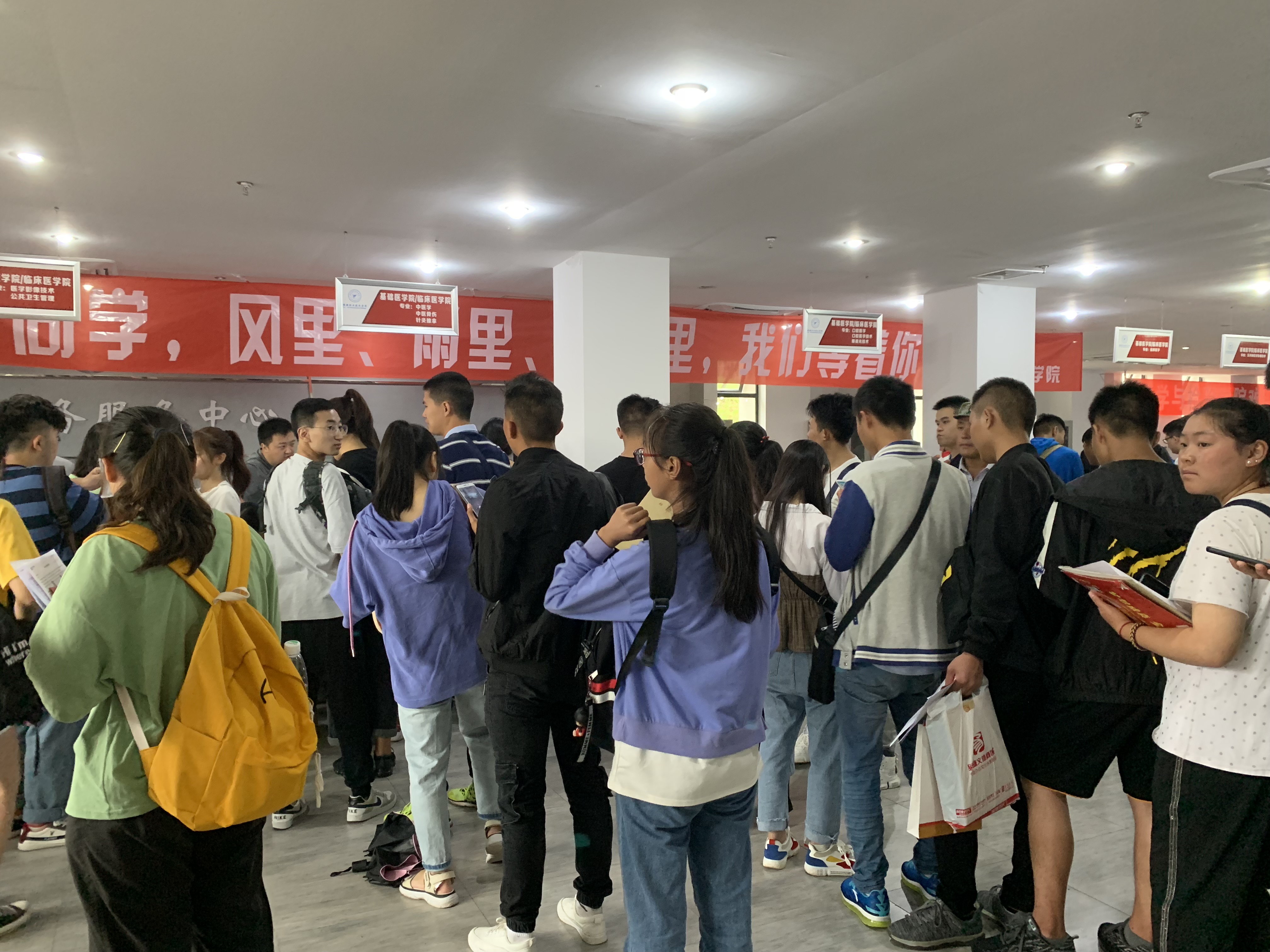 为了确保基础医学院迎接2019级新生入学报到工作有序,帮助新生顺利完成入学手续办理和尽快熟悉学院环境,基础医学院于8月31日和9月1日在经开区实训与服务中心组织学生志愿者协助老师一起顺利完成迎新工作。两天共计52名志愿者参加了迎新工作,共接待新生1300余人。
