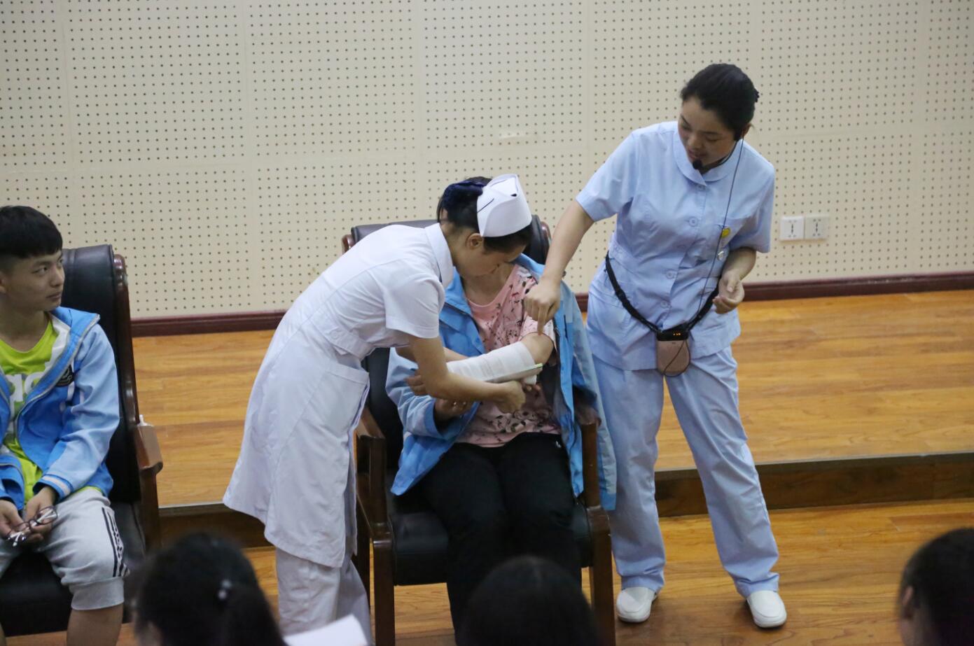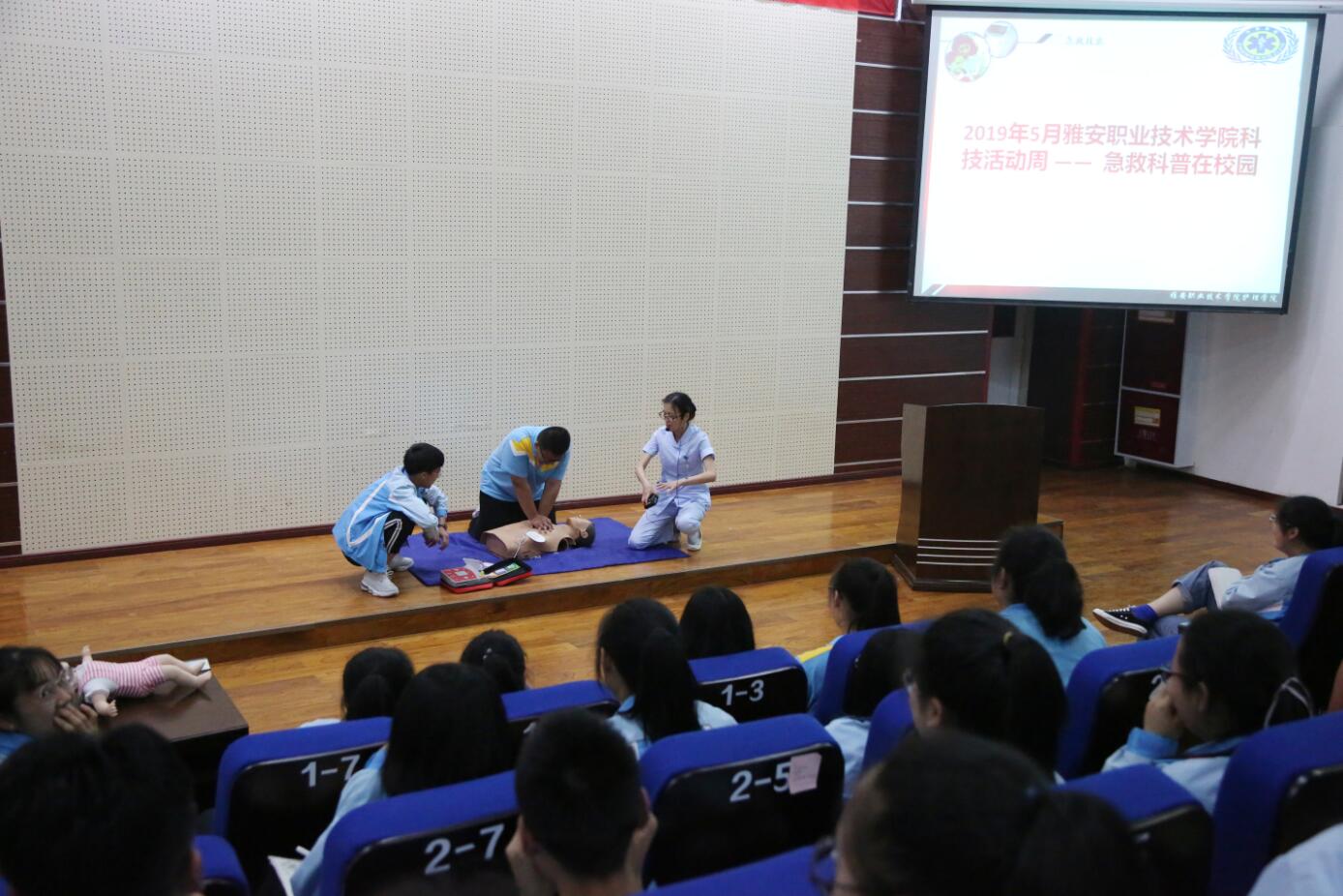 为继承和发扬南丁格尔精神,增强中学生的安全防范意识,让学生们初步掌握自救互救知识,提高自救互救技能,在职业教育活动月、科技活动月之际,5月21日下午,由护理学院黄蕾、殷显艳老师、护理专业学生组成的志愿服务队走进雅安中学大兴校区,针对中学生开展急救技能培训讲座。