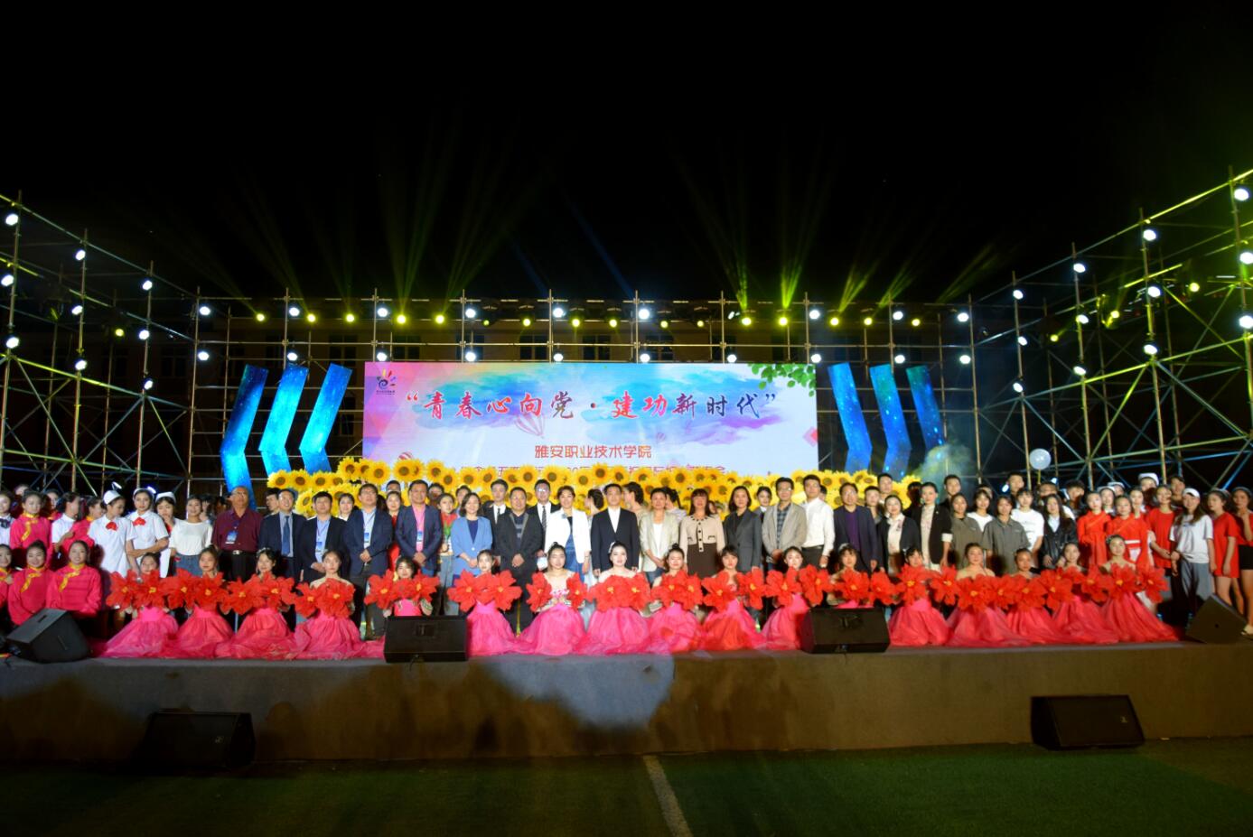 5月9日晚,由学院团委承办、护理学院协办的“青春心向党•建功新时代”纪念五四运动100周年暨庆祝国际护士节晚会,在青年路校区田径场顺利举行。学院党委书记李春模,党委副书记、院长石静,学院2019年产学研创暨就业实习工作研讨会的嘉宾以及3000余名师生代表共同观看演出。