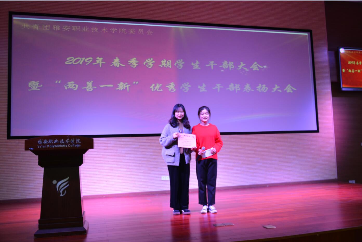 3月26日,2019年春季学期学生干部大会暨“两善一新”优秀学生干部表扬大会在青年路校区实验实训楼二楼多功能厅拉开帷幕,团委书记刘永恩、团委老师及150余名学生干部代表参加了活动。