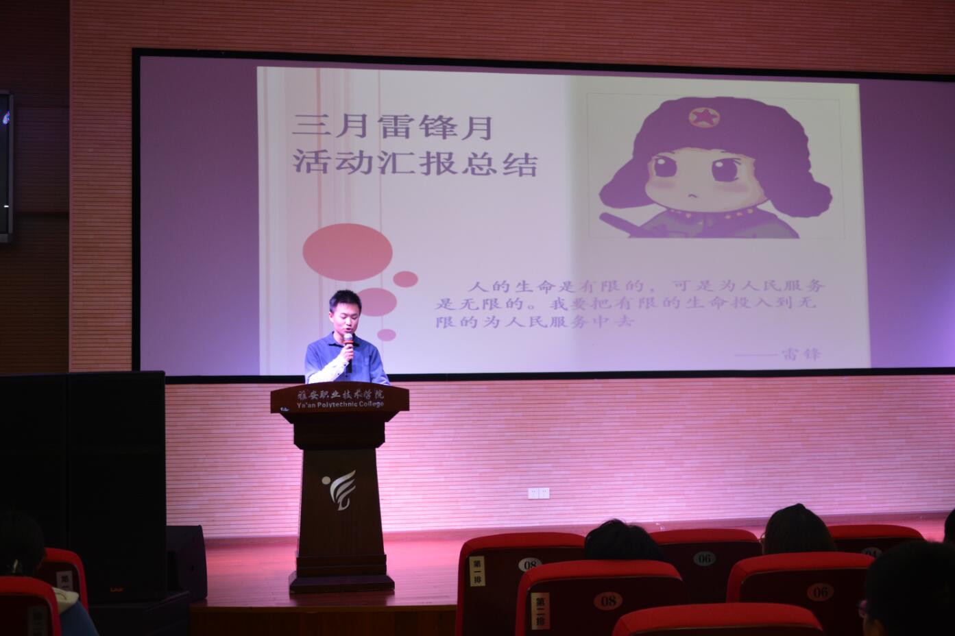 大会伊始,学生会李婉滢、周什景、药检学院刘虹菊等分别为绕部门重点工作申报、青年大学习、学雷锋志愿服务活动等专题向大家进行了分享。通过他们的倾心分享,大家感受到不管是工作,还是生活,都要付出行动和热情,需要积极主动的奉献精神,越努力才会越幸运!随后,疾病预防协会的蒋胜兰同学讲解了春季常见疾病及预防,提倡同学们要勤加锻炼、强健体魄,不让疾病乘虚而入。会议的第二个议程是对第二期“两善一新”优秀学生干部进行了表扬。受表扬的20名优秀学生干部是我院学生干部中善学善思、善作善诚、善行善为的榜样,充分展示了我院学生干部团队“抓学习、练本领、树先锋、做榜样”良好风尚。最后,刘永恩对主题发言和受表扬的同学给予了肯定,鼓励同学们积极参与到学院的活动中去,向身边的榜样学习,不让自己的青春留下遗憾。