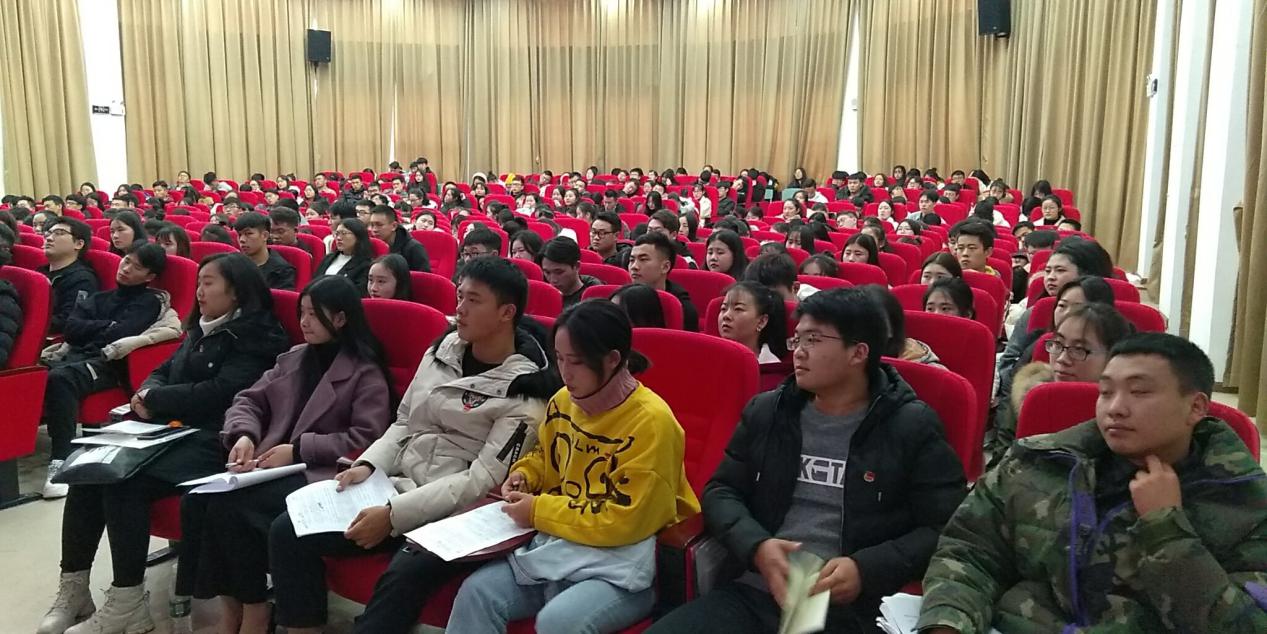 【本网讯】12月4日,学院关工委党建、思政教育指导组组长张敬春副教授、副组长李晓萍副教授,来到学院第六期团校学员中间,为同学们作了关于“改革开放40周年”的主题报告。院团委书记刘永恩、二级学院团总支书记,以及287名团员青年现场聆听了报告。