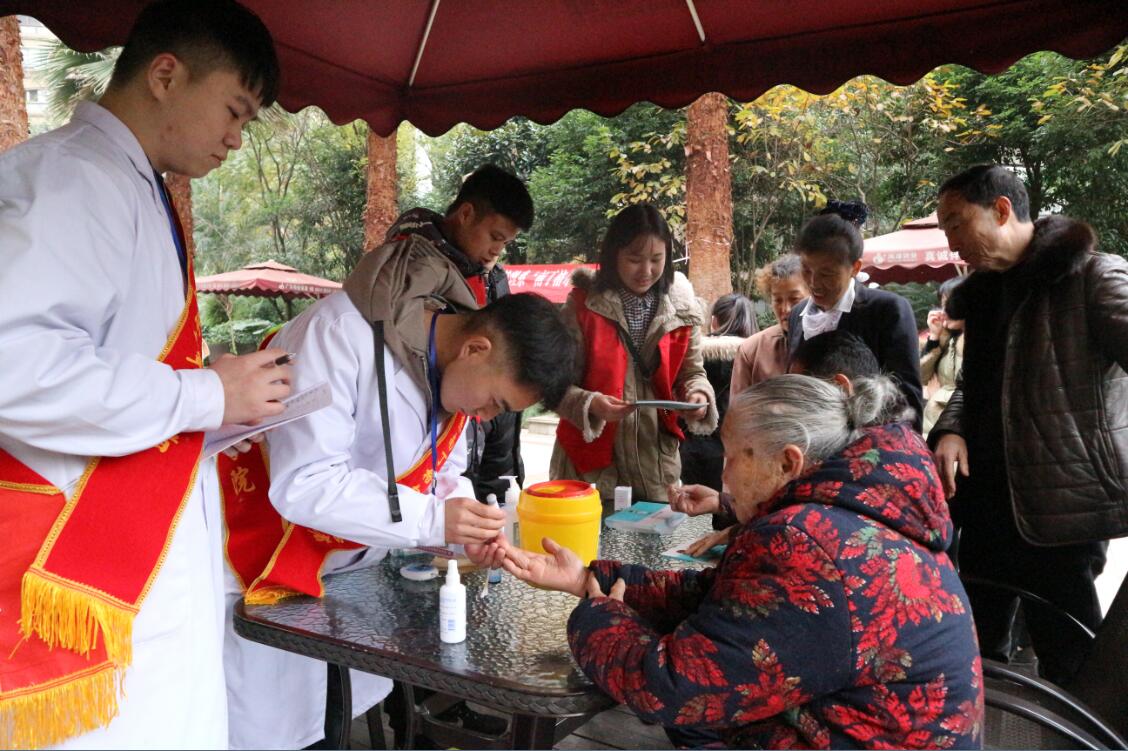 【本网讯】为践行“南丁格尔”精神,增强居民健康意识。11月20日下午,学院向岚老师带领9名志愿者在雨城区第一江岸小区开展了护理学院“南丁格尔”爱心义诊——暖冬行活动。