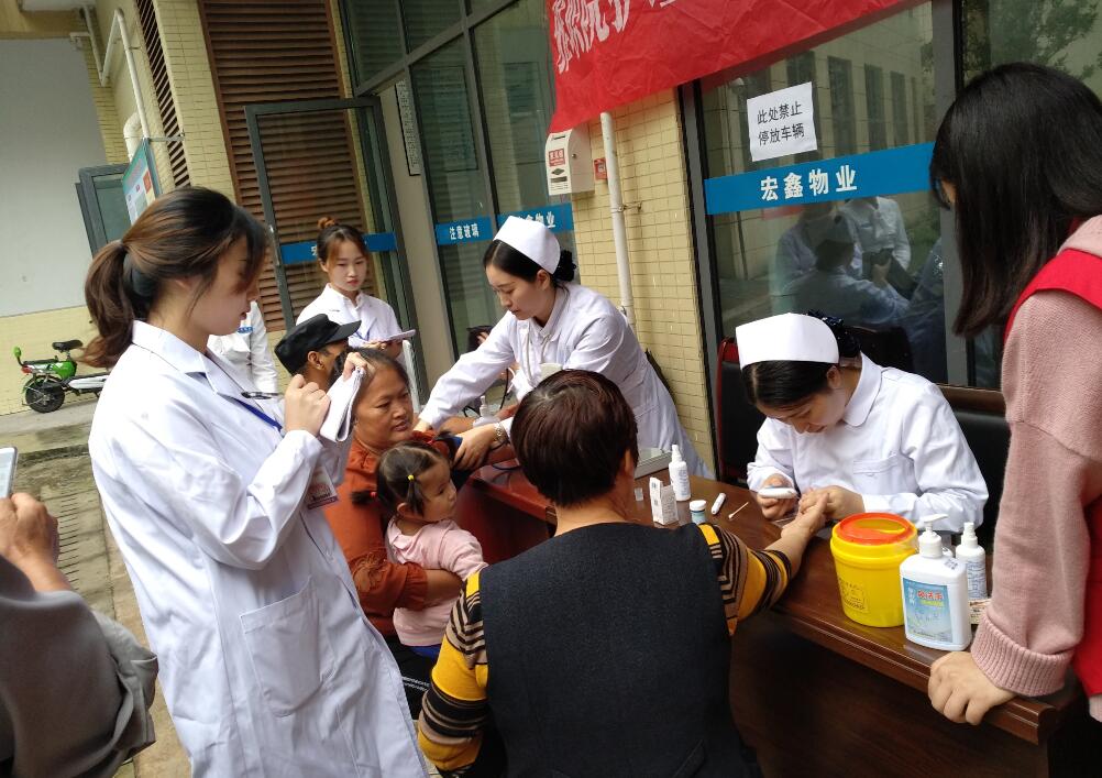 【本网讯】9月25日,在许玉贤、廖林梅、杨小芳三位老师的带领下,护理学院青志协在雅东丽都小区开展了“健康与爱同行”为主题的社区义诊活动。志愿者们以实际行动关注关心居民身体健康,弘扬正能量,传递爱心。