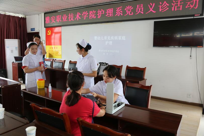 活动分为健康讲座、义诊、居家安全环境评估三部分。护理系教师向岚和黄丹(大)分别为居民们开展了糖尿病预防和婴幼儿保健与护理讲座。其他人员分别参与到为居民测量血压和血糖、发放老年保健手册、入户评估居家安全环境、为居民送上生活用品等环节中。