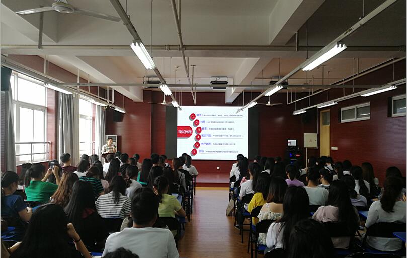 两位老师就2018年全国教师资格证考试政策、考试流程与要求及教师资格证考试面试的要求及注意事项对学生进行了生动具体的案例式解读与讲解。通过讲座,同学们对教师资格证考试情况有了更加深入的了解,增强了参加2018年11月全国教师资格证考试的应试能力。