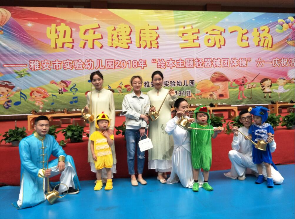 【本网讯】5月31日,受雅安市实验幼儿园的邀请,旅游经济管理系刘燕等六位同学到雅安市体育馆,带着精彩的茶艺节目与小朋友们一起欢度“六一”儿童节。