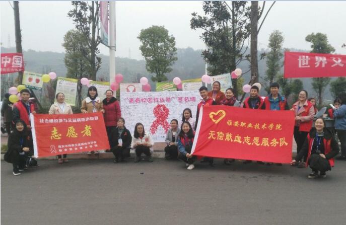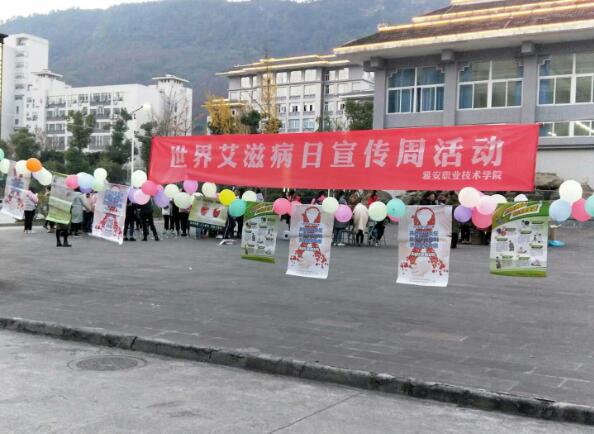 【本网讯】2017年12月1日,是第30个“世界艾滋病日”,为进一步提高对艾滋病的警惕性,深化广大师生对艾滋病的认识,12月1日至12月8日,疾病预防与宣传协会联合雅安市性病艾滋病防治协会在经开区实训与服务中心和青年路校区开展了世界艾滋病日宣传周活动。