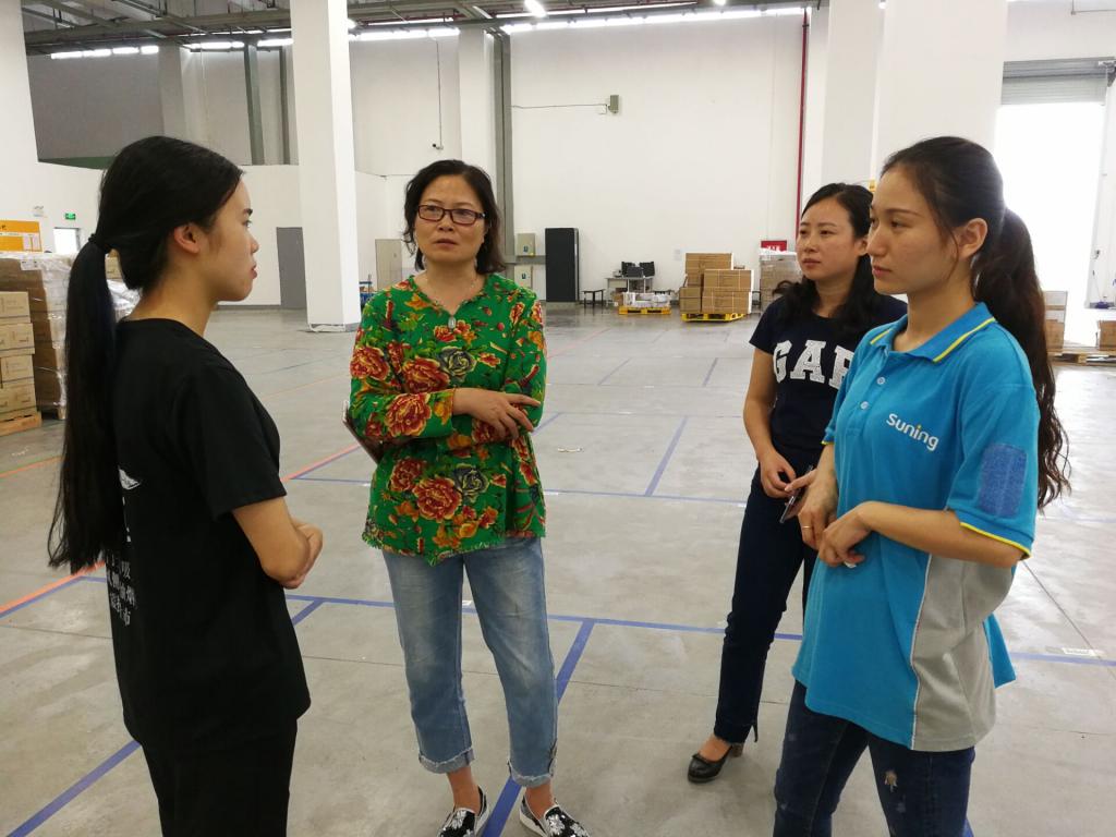 随后,李霓、李柚还与川宁苏宁物流有限公司的小件仓运营总监高友强和人力资源总监江曼莉就学生实习事宜进行了进一步的沟通和协调,针对同学们特别关注的工作强度、薪酬问题、优先就业、岗位轮换等问题达成了一致意见。