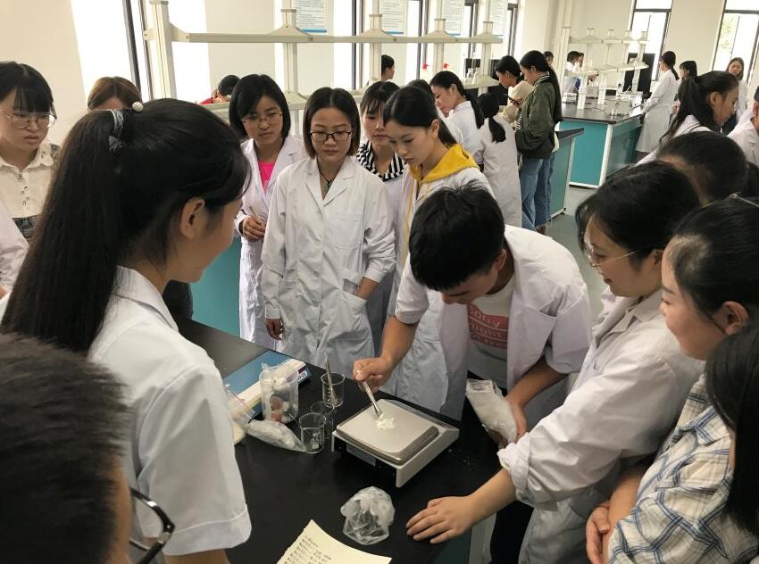 【本网讯】9月19日,药检系团总支学生会组织系部同学在药学与检验实训楼一楼化学实验室进行了手工香皂小制作活动,制备过程由姚永秀老师进行讲解。