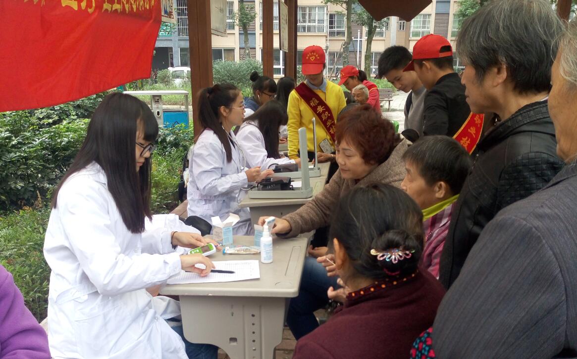 活动现场有许多居民前来咨询并测量血糖、血压,更有居民携同家人、朋友来到服务点。志愿者们情绪高涨,精神饱满,始终面带微笑,热情细致地接待每位前来就诊咨询的群众,让社区居民在家门口就能感受到温情细腻的卫生服务。志愿者们学以致用,以扎实的医学理论功底耐心地为来咨询的居民解答健康疑惑。此次义诊活动,引起了社区居民的极大关注,整个上午,有接近200多名居民前来寻医问诊,测量血压198人次,测量血糖100人次,共发放宣传资料500余份,志愿服务起到了良好的效果。在活动快结束时,还有许多居民前来咨询和检查,很多人为来晚了没查到血糖而感到遗憾,同时他们也提出希望,期盼我们以后能多开展此类义诊活动。