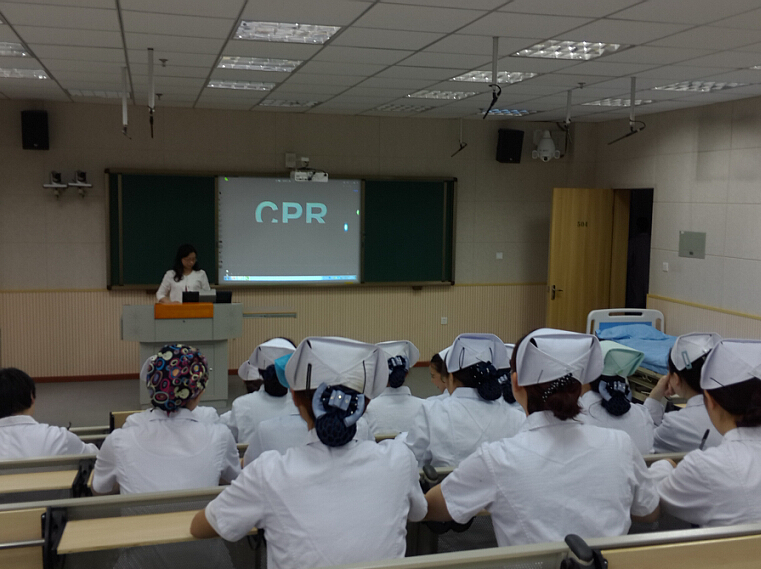 本次培训包括三个方面的内容:附属医院临床带教老师和机动库护士指导学院护理系参加“2016年全国高职高专技能大赛”4名选手的操作,老师们以丰富的临床经验向参赛选手提出宝贵意见,并结合技能大赛的实例与学院护理系老师共同商讨在临床带教中遇到的问题及解决办法。急诊科护士长饶广惠用精美的PPT、形象生动的视频为大家作了题为《2015年新版心肺复苏术》的专题讲座,强调将人文关怀知识融入到护理工作中的重要性及具体实施方法。护理部副主任陈俊及急诊科护士长饶广惠、带教老师苟玉琴、机动库护士童玲示范了头部及前臂的包扎,大家认真聆听,做好笔记,逐一进行急救技能操作练习,饶广惠一一予以技术指导。