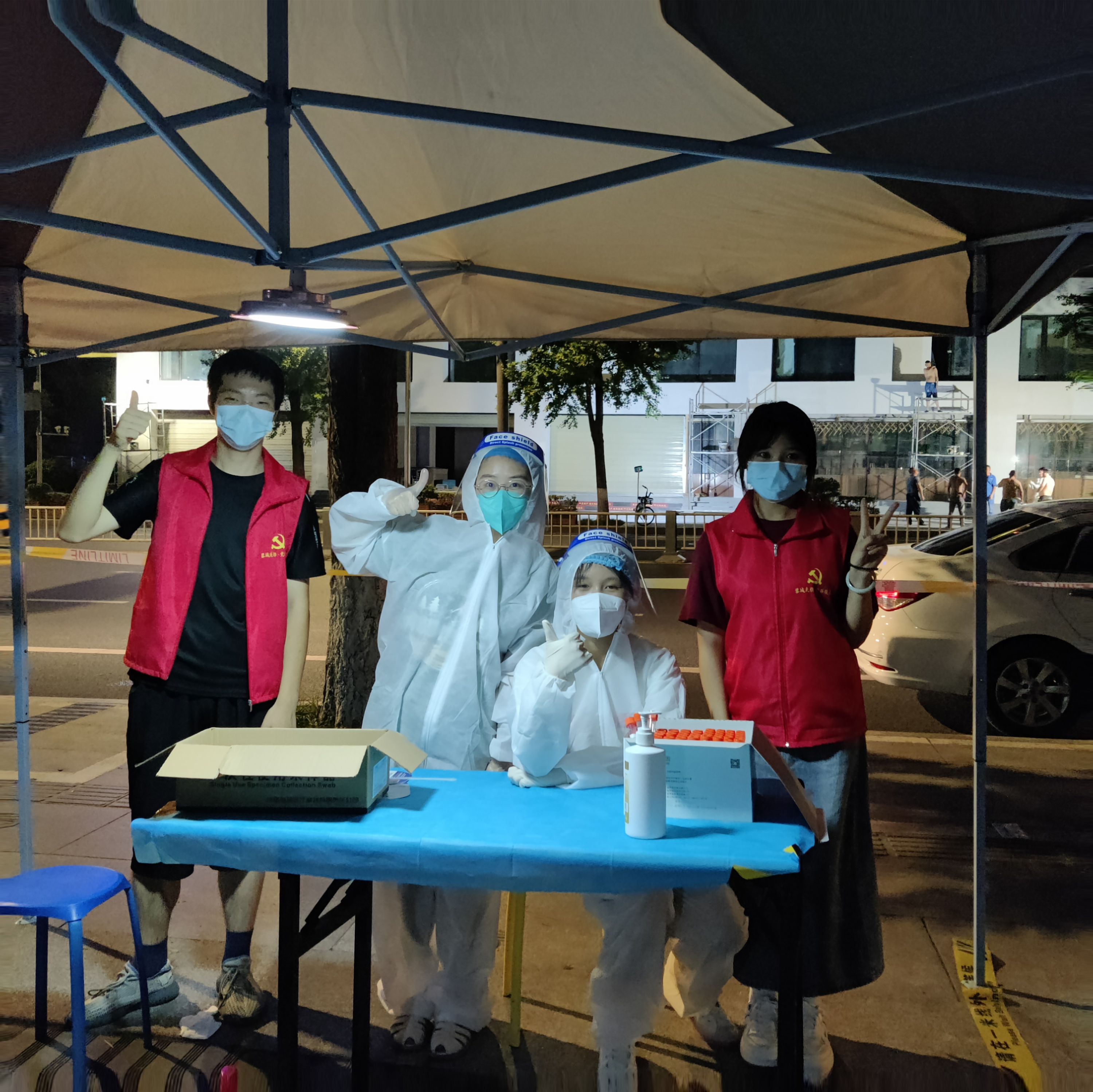 我的家乡位于四川省成都市邛崃,从成华区回来的密切接触者确诊的那天,我从未想过凌晨四点会被社区工作人员叫醒去做核酸,睡眼惺忪的起来后,从窗台望下去密密麻麻的全是人,我跟着走下去,看着大街小巷都是穿着红色马甲的志愿者,听着旁边的阿姨说他们从中午就开始忙碌,一直到现在还没休息,我的心里无尽的敬佩,第二天我便加入了这个志愿者大家庭,每天八点就起床到核酸点位,穿着厚厚的防护服,一直忙碌不停,但我从不觉得累,我是打心里眼的佩服医护人员和志愿队长们,他们很多时候连水都喝不上一口,但是不忘关心我们,不断送来水和藿香正气口服液,这里每个人都充满爱,我们都有共同一个目标——“战疫”,与爱同行,战疫必胜!