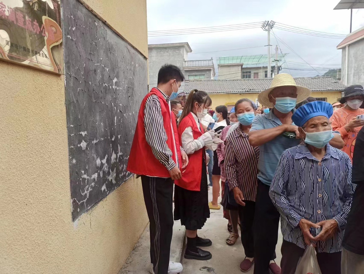 我是一名大一学生,在返乡前期我就有打算返乡后要为自己的家乡贡献一份自己的力量,于是我加入了我所在的街道疫情防控志愿者团队。志愿者服务地点在孔明街道太阳社区文化站。我主要是辅助录资料的人员,帮助一些老年人写电话号码、准备身份证,同时也要维持现场秩序。