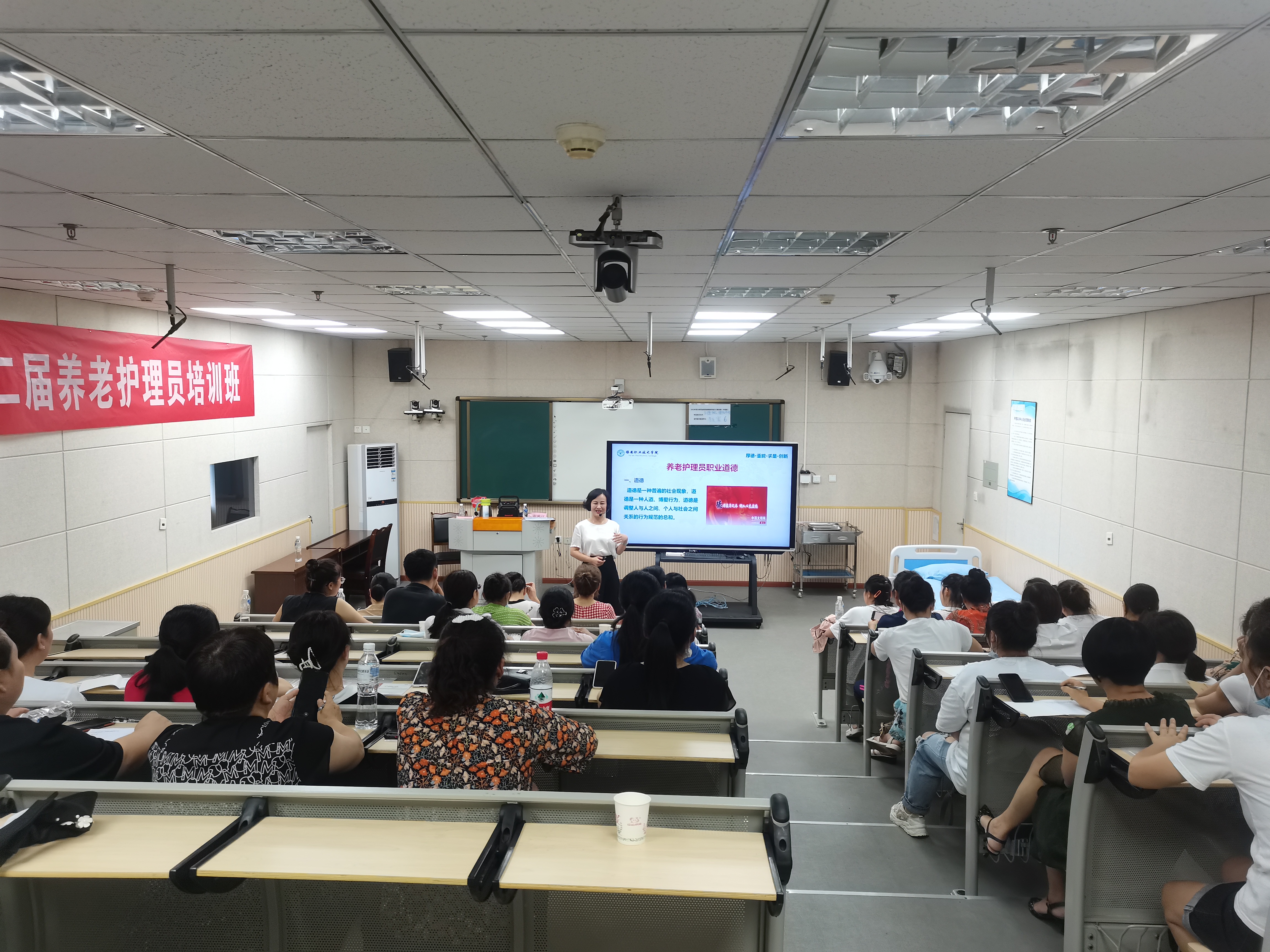 此次培训分为养老管理人员及养老护理员培训,两期共112名学员。来自学院疫情防控办严桥、市消防队吴野科长、市福利院唐福平副院长,围绕疫情防控、消防安全、强管理重业务增效益等主题开展讲座。护理学院王静院长、李婧副院长、郭建梅、杨小芳、任冬梅、王菠等相关教师开展养老护理员相关培训,学员表示通过学习后会将此次培训内容用于以后工作中,更好地服务于老人。