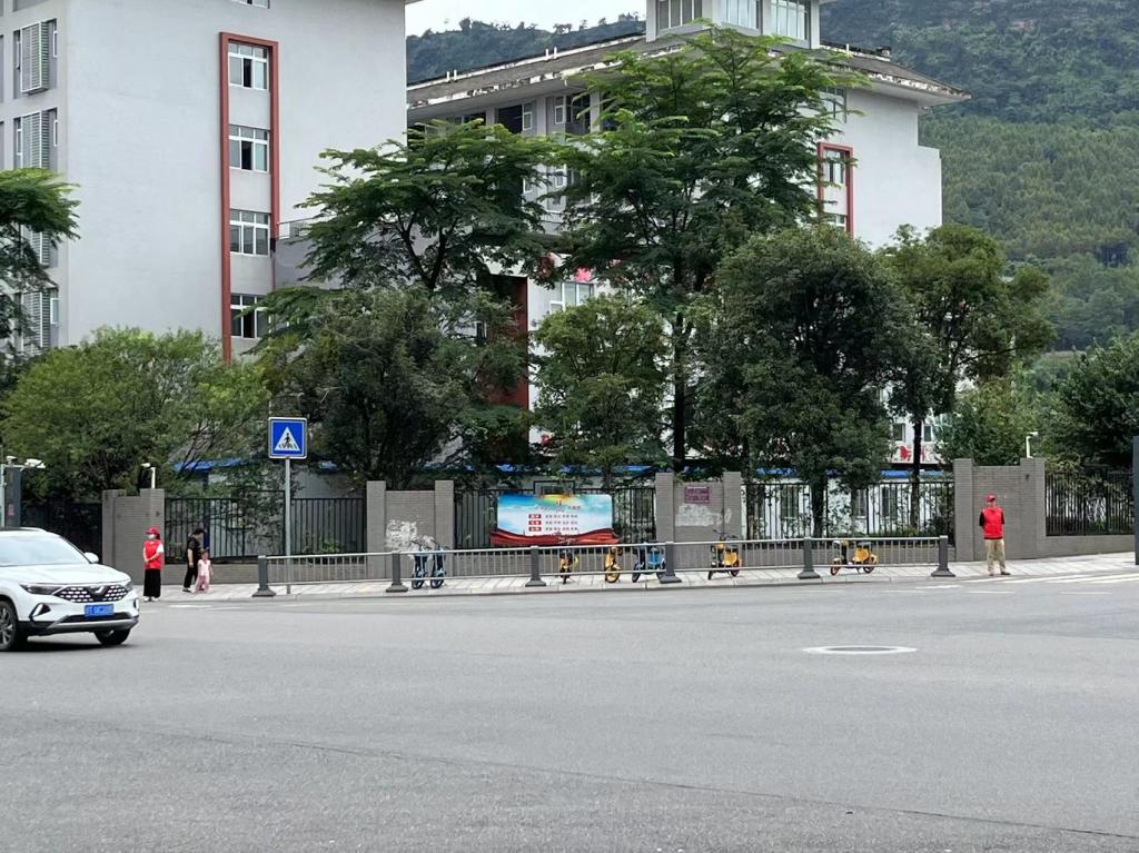 4名同志针对来往摩托车及电动车骑乘人员不戴安全头盔、逆向行驶、行人横穿马路等常见及多发的交通违法行为进行劝导及制止。耐心向行人讲解违反交通规则带来的交通安全隐患,协助交警维护交通秩序,引导共享单车有序停放。