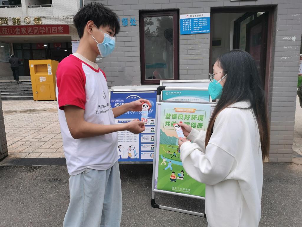10月9日-11日,在学院经开区与青年路两校区,通过“线上+线下”等多种形式,为大学生进行心理健康知识普及宣传。通过学校官微推送世界精神卫生日心理健康知识普及专题文章,从调整规律作息、保持社会联结、增强自然联结、促进自我觉察、转移注意力等方面,引导学生学会在后疫情时代科学守护自我的身心健康,并提供了心理辅导联系方式,引导学生主动寻求帮助。同时,通过线下发放心理健康宣传资料,普及心理健康知识和心理辅导求助方式,营造关注身心健康的良好氛围。