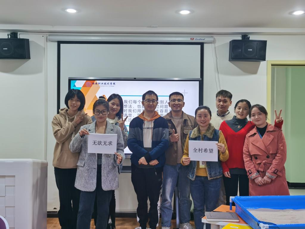 在当前严峻复杂的疫情防控形势下,学院高负荷工作的辅导员们也面临着巨大的工作压力和挑战。为加强特殊时期辅导员队伍心理建设和对辅导员的人文关怀,结合新形势下的高校环境和辅导员的工作特点,学院心理健康教育中心联合“雅韵润心”工作室,于10月28日下午3点在青年路校区未成年人心理成长指导中心开展“解压赋能,做好思想领路人”心理团辅活动。本次活动通过团体沙盘游戏的形式为辅导员释放压力,纾解情绪宁静的午后,温馨清雅的沙盘室,柔滑的细沙,丰富的沙具,沙盘游戏在这样一种“自由与保护”的空间中,运用沙子、沙箱和沙具,通过沙具的选择与摆放过程营造内心自我的对话。