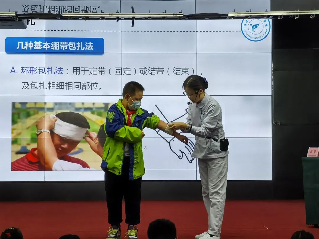 护理学院教师黄蕾就烫烧伤、吸入浓烟后的医疗急救和处置知识进行了讲解,并演示了现场包扎等救护方法。护理学院教师彭玉娇,学生张馨月、沈顾参与实训指导。培训过程中,参与演练群众积极配合,踊跃参与,认真实践,纷纷表示这次活动受益匪浅。