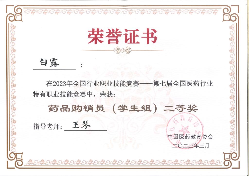 3月17日至19日,由中国医药教育协会、中国就业培训技术指导中心主办的“2023年全国行业职业技能竞赛第七届全国医药行业特有职业技能竞赛药品购销员赛项”在广东省食品药品职业技术学校举行,来自全国的61所院校和8家单位的69支队伍132名选手参加比赛。经过激烈的角逐,药学与检验学院五年制药学专业学生白露、李欣莉分别斩获二等奖、三等奖,并荣获单项团体三等奖。
