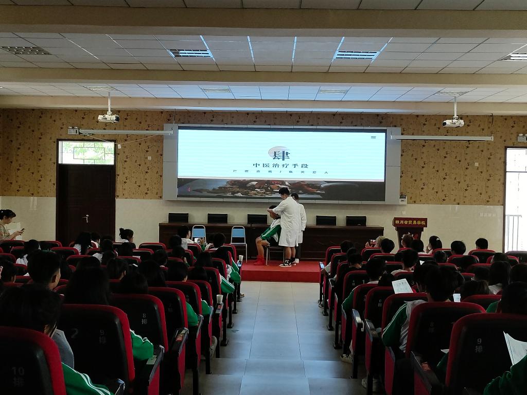 为促进中医文化走进校园, 5月17日,中医与康复养生学院针灸推拿专业22级1班2班、中医学专业22级3班团支部联合在四川省贸易学校开展“医者膳心”中医文化宣传活动。