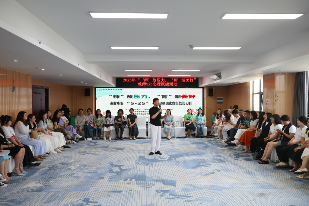为进一步丰富教职工校园文化生活,深入推进心理健康教育工作,切实关怀教师心理健康与心灵成长,助力舒缓压力、深化自我认知,5月19日,一场主题为“‘师’放压力,‘育’渐美好”的教师“5・25”心理赋能培训在学校青年路校区学府花园酒店8楼多功能厅举行。