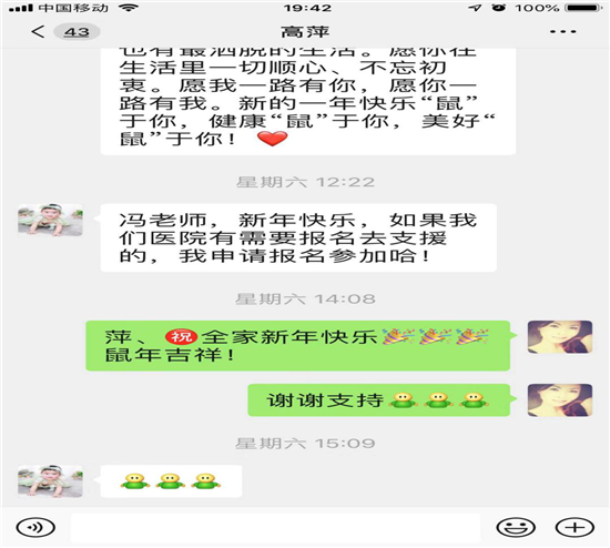 他们放弃休假,随时准备投入到抗击疫情的第一线。医院微信工作群里一句又一句“请战”此起彼伏,掷地有声。不管是党员还是非党员,大家纷纷表示,时刻准备着,全力以赴,共同抗击疫情,打赢这场没有硝烟的战争!。