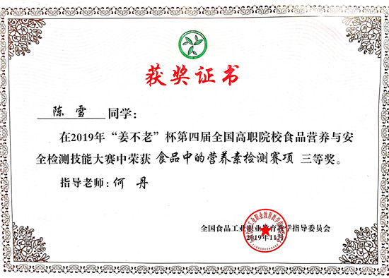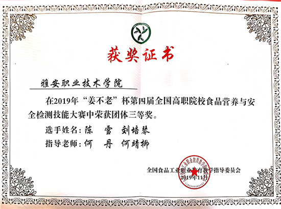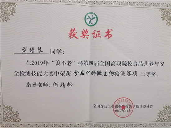 四川新闻网雅安11月21日讯(何靖柳 姚志如 文/图)11月14日-17日,第四届全国高职院校食品营养与安全检测技能大赛由全国食品工业职业教育教学指导委员会主办,江苏农林职业技术学院承办,全国共83所院校,163名选手参加比赛。经过激烈角逐,beat365英国官方网站药学与检验学院食品专业的两名学生分别获得“食品中营养素检测”赛项三等奖、“食品中的微生物检测”赛项三等奖和团体三等奖的优异成绩。