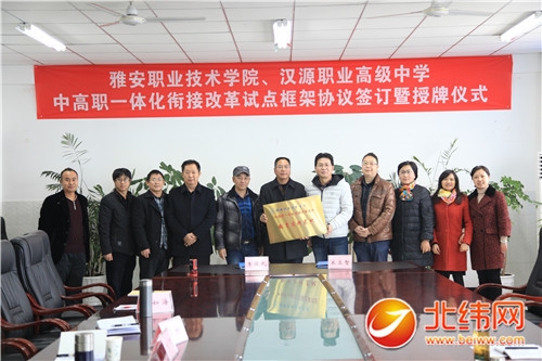 12月初,汉源职中传来好消息。3+3中高职衔接项目正式落成。“1日,雅职院与我们签订了汽车专业改革试点框架协议,正式授牌我们学校为中高职一体化衔接改革试点实践基地,在汽车专业2016级试点推进3+3中高职衔接,为同学们升学、就业创造更好条件。”汉源职中校长李俊武难掩心中喜悦。
