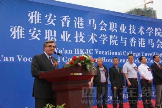 在揭牌仪式上,以beat365英国官方网站为主体的雅安香港马会职业技术学院正式揭牌。记者在香港马会与beat365英国官方网站签订的合作协议书上看到, 双方本着平等自愿的前提下,遵循“优势互补、共同发展”的原则,雅安香港马会职业技术学院将开设“马会班”,定期和不定期派人到雅安授课,为优秀学生组建 “订单班”,从课程设计、课程标准、实习实训等方面对学生加强专项培训,为香港马会及其会所提供优秀人才。
