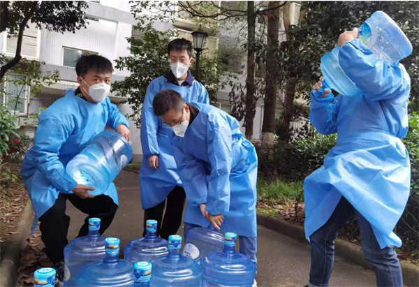 临床医学院游志中老师因同事有事,他第一天代替同事来到观察点,第二天同事来了,他也还是来了。他说自己作为临床医学院的一员,在这个紧要关头,自己能够出力就尽力而为,不管哪里需要自己都服从安排,能做一点是一点。在给各个楼层送桶装水时,游志中老师一个人一次扛起两桶水,往返于楼下和楼层之间,虽已51岁,却硬生生地将8桶水顺利送达学生宿舍,连年轻老师都自叹不如。
